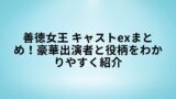 そこで今回は、出演者・登場人物・役柄を、はじめて観る人にもわかりやすく整理していきます。